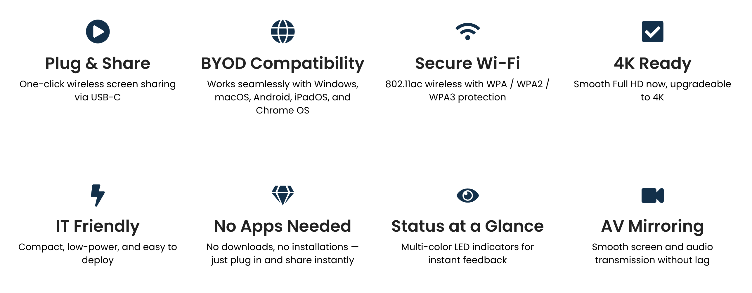Plug in. Press Share. Your screen is on. ASTROS Pod AP4-12 & AP4-11 turn any meeting space into a seamless BYOD experience — no apps, no drivers, no cables.
