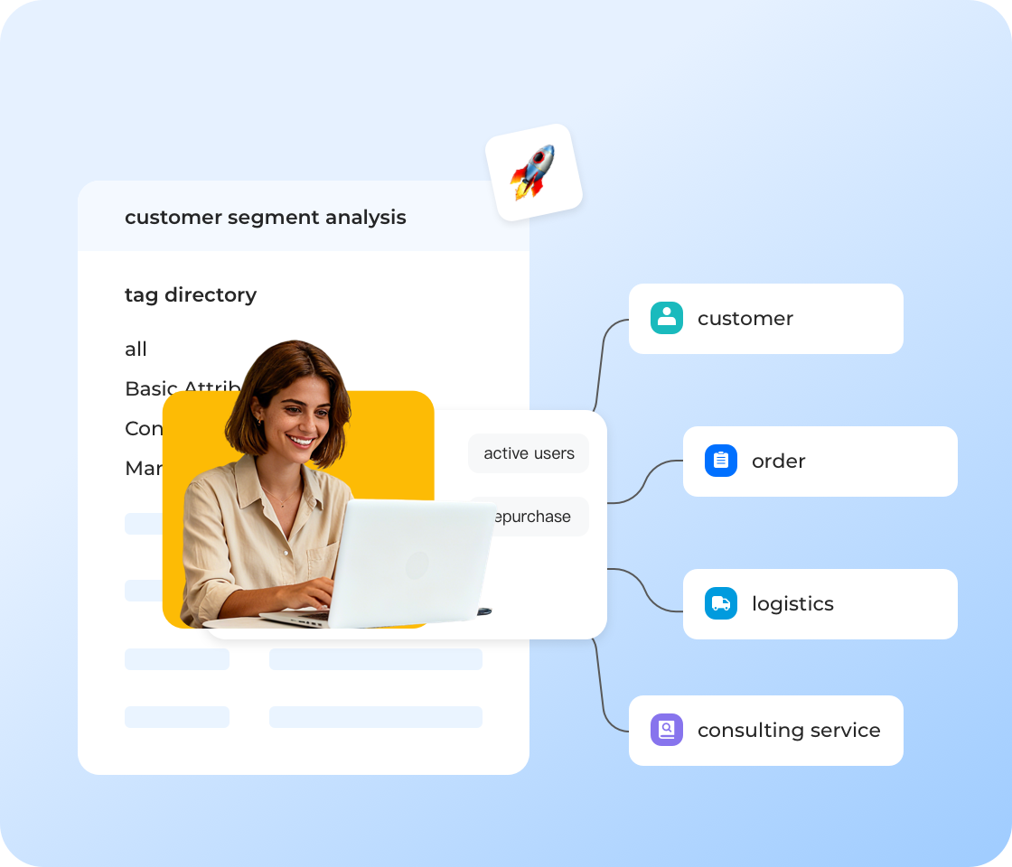Seamlessly integraates CRM ERP and other business systems, allowing enterprise CRM, order, and logistics systems to seamlessly connect with the Instadesk platform. Customer service representatives can directly view customer information, order information, inquiry portals, and more without switching systems. This provides more precise and efficient service improves efficiency by 30%, increases customer satisfaction by 20% and provides a more understanding customer experience.