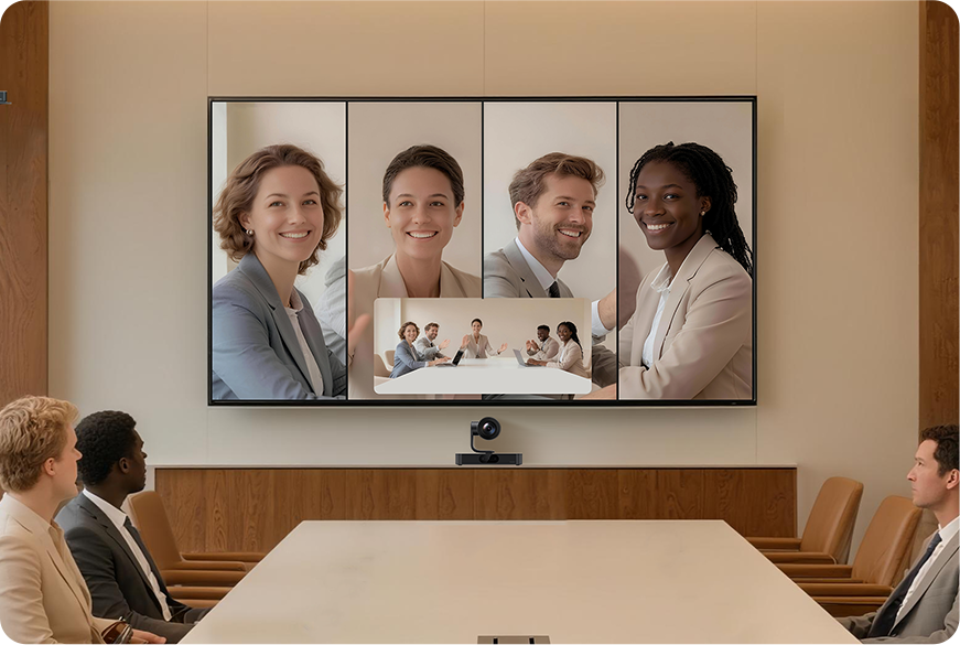 The IntelliFocus feature smoothly displays real-time close-ups of the recent speakers, enhancing major focus on active speakers and face-to-face experience .