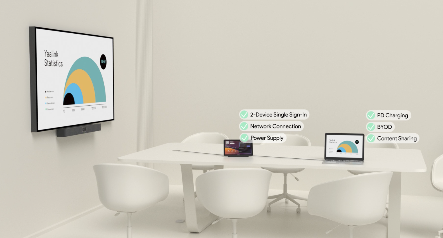 MeetingBarA40's One-Cable Solution simplifies deployment and sharing in 2 ways.