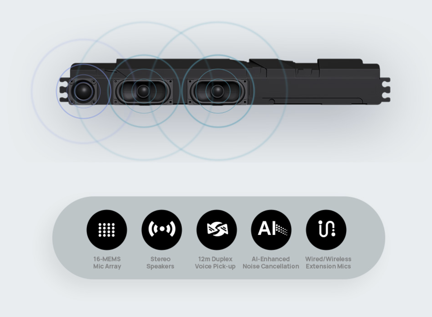 MeetingBoard Pro delivers immersive stereo sound with powerful 36W speakers ensuring rich audio coverage for large meeting spaces. It's 16-MEMS mic arrays enhanced by AI, provide crystal-clear conversations and full-duplex coverage up to 12 meters, guaranteeing every voice is heard with precision.