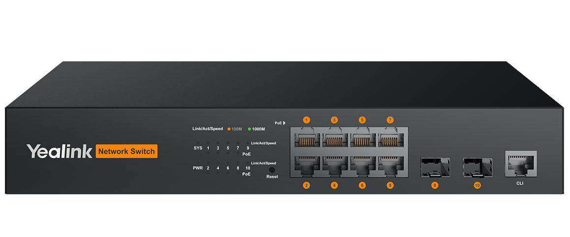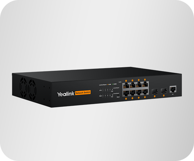 The Yealink RCH80 is an 8-port L2+ web-based managed AV switch purpose-built for professional AV over IP