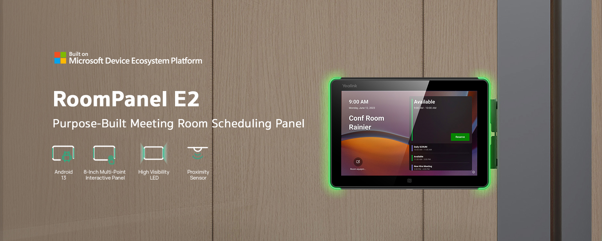 with its easy-to-use touch screen, allowing you to view meeting details and reserve rooms effortlessly.