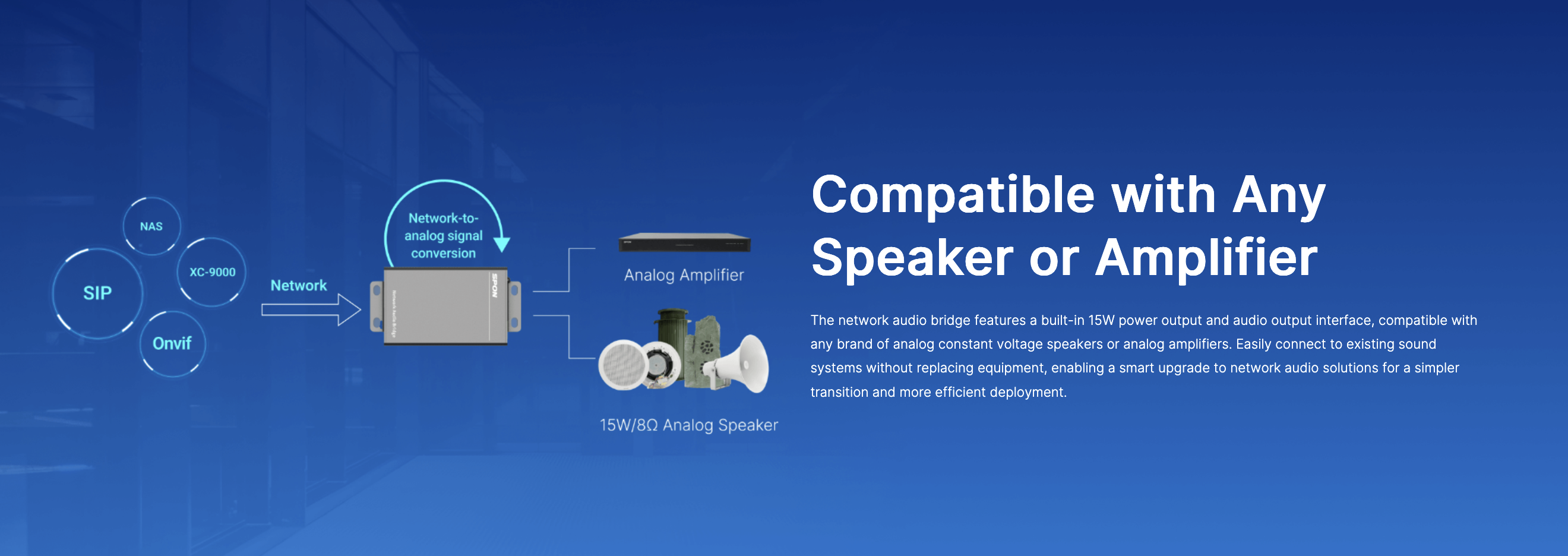 The GEN-3101A01 Network Audio Bridge is a compact, smart audio terminal that converts any passive speaker or amplifier into