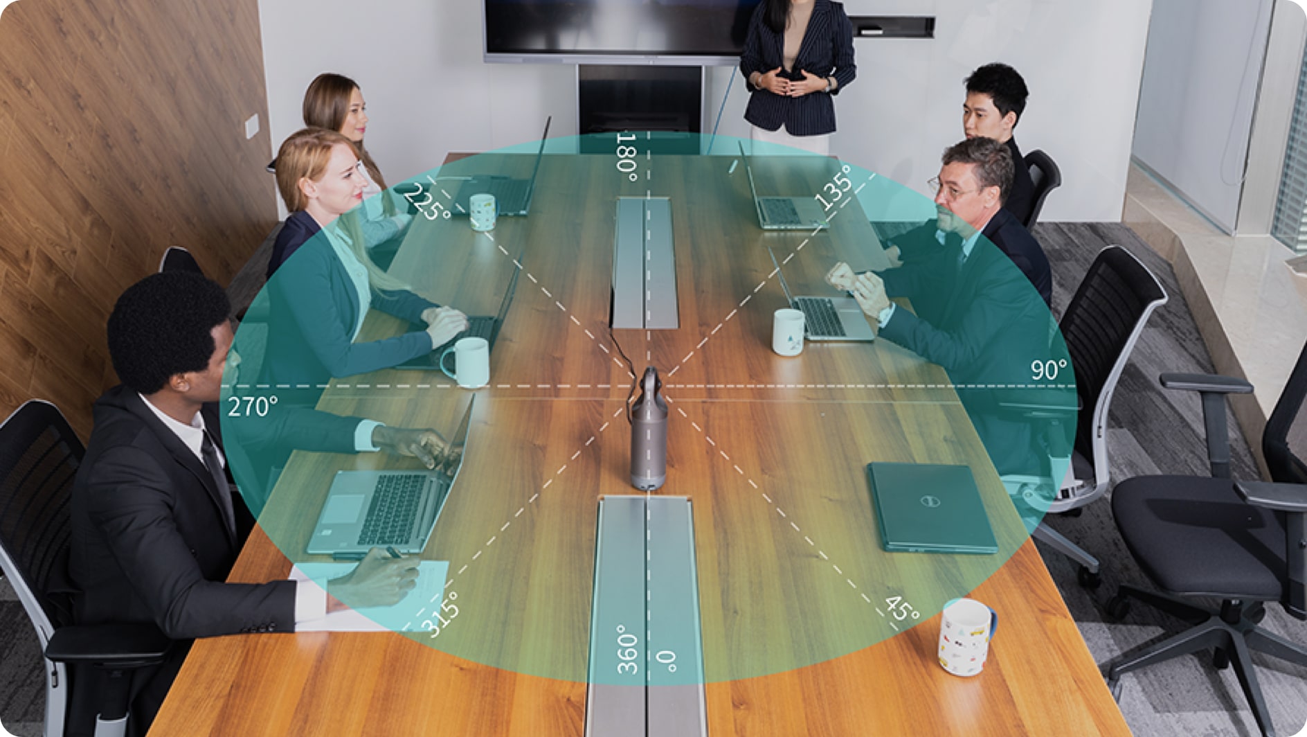 Kandao Meeting Pro is an AI-based 360° video conferencing device, which equipped with 360-degree lens,