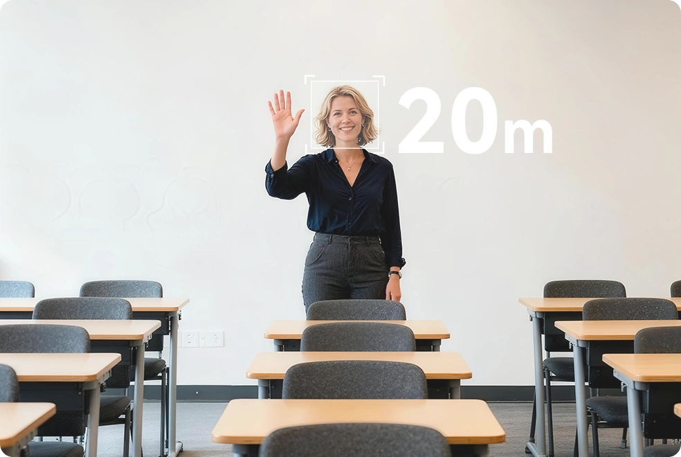 Presenter Tracking delivers smooth, lossless tracking with up to 20x optical zoom , maintaining crystal-clear image quality even at distances ofup to 20 meters.