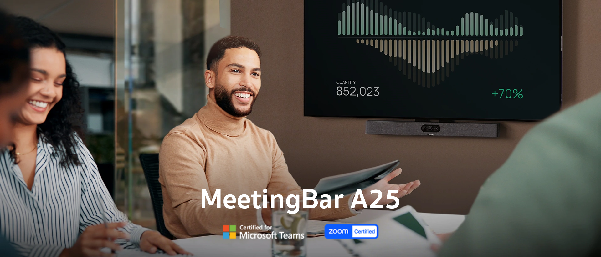 The MeetingBar A25 ensures everyone is equally impressive and important in a virtual meeting. Embrace a new level of meeting equity.
