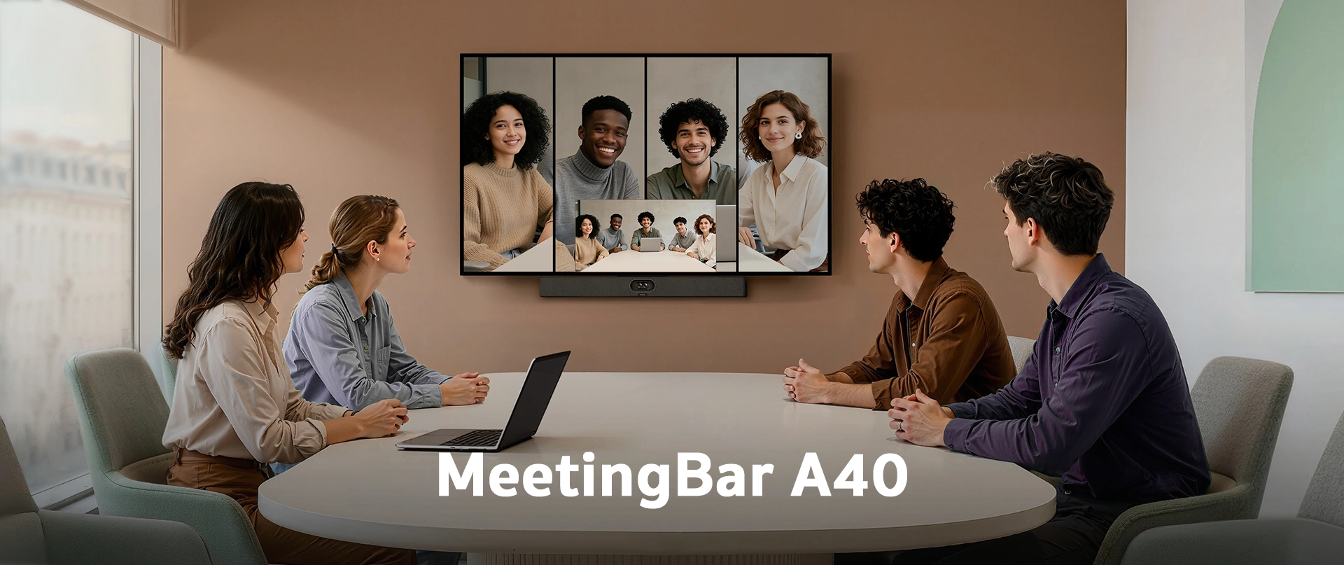 MeetingBarA40's One-Cable Solution simplifies deployment and sharing in 2 ways.
