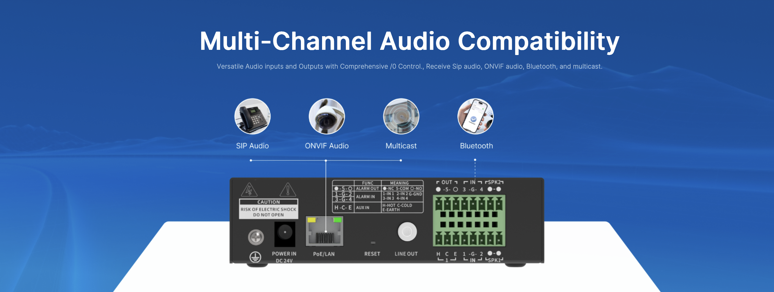 amplifier for 8Ω speakers, it allows existing analog PA systems to easily access advanced IP audio features—without the need for equipment replacement.