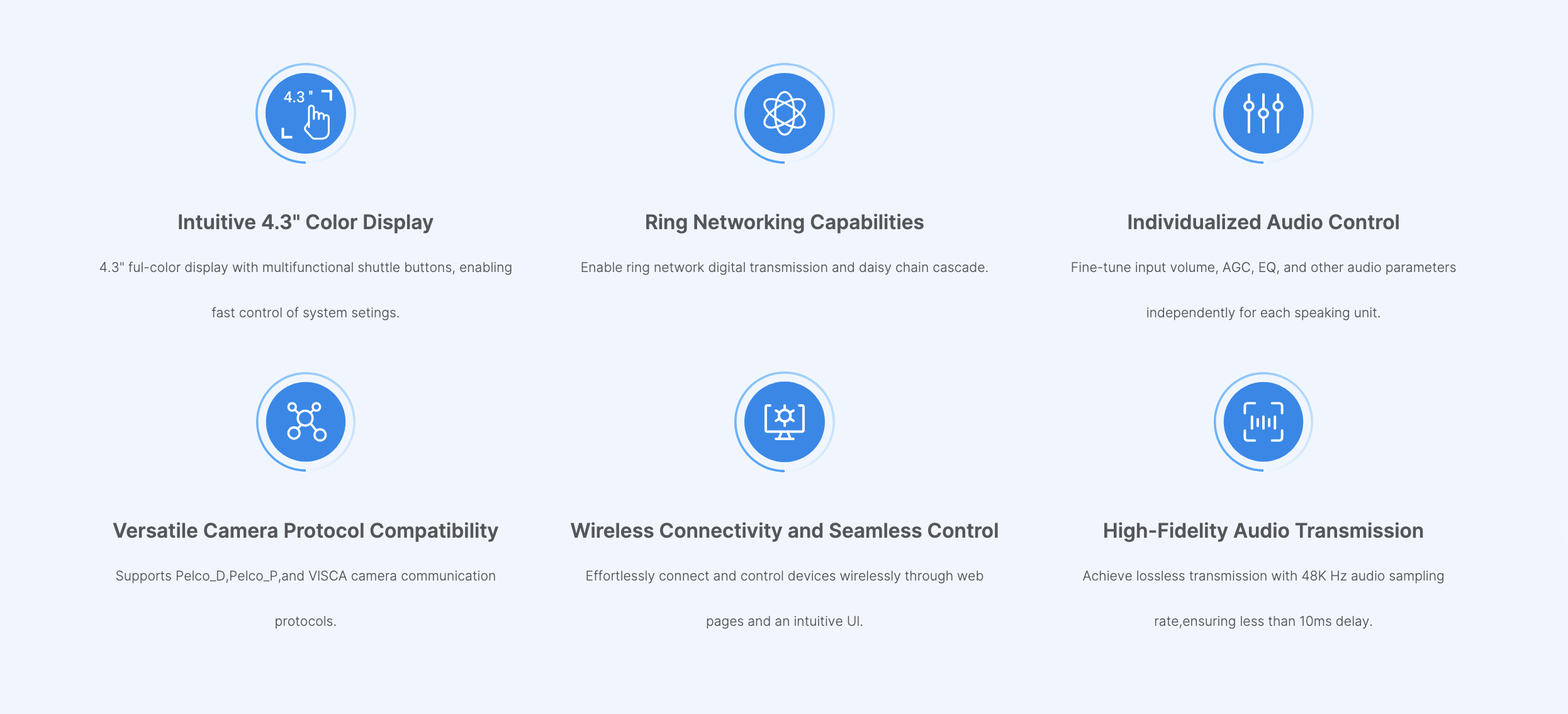 • 4.3" Color UI Screen • Lossless 48K Hz Audio • Ring Network Flexibility • Wireless Remote Access • Sign In and Voting
