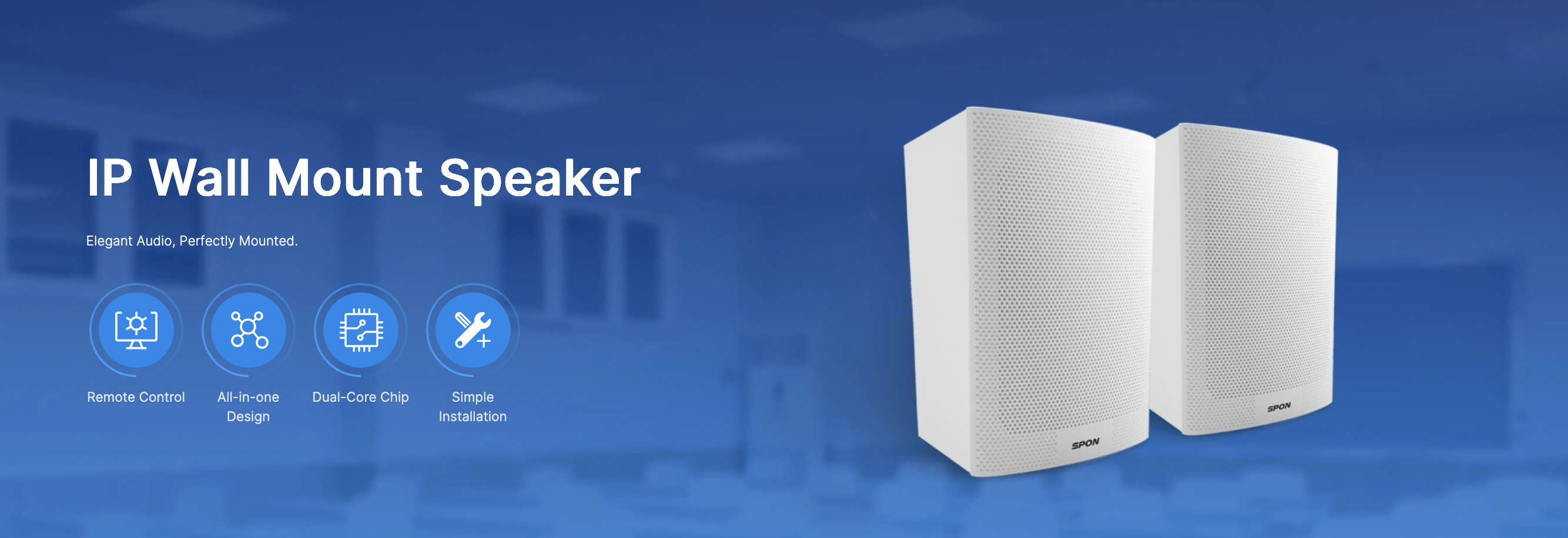 The IP Wall Mount Speaker by SPON offers high-quality audio in a sleek, compact, wall-mounted design.