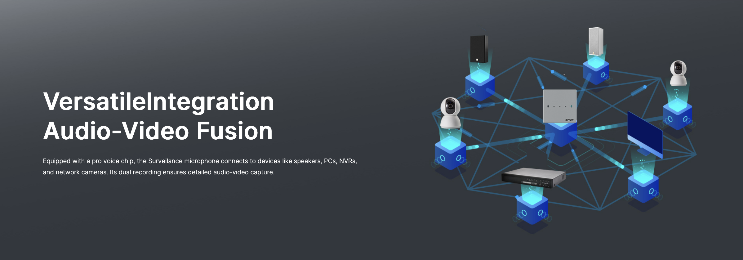 • Automated Gain Control • Dynamic Noise Reduction • Web Page Configurations • Adaptable Audio Monitoring • Versatile Integrations with IPC, NVR
