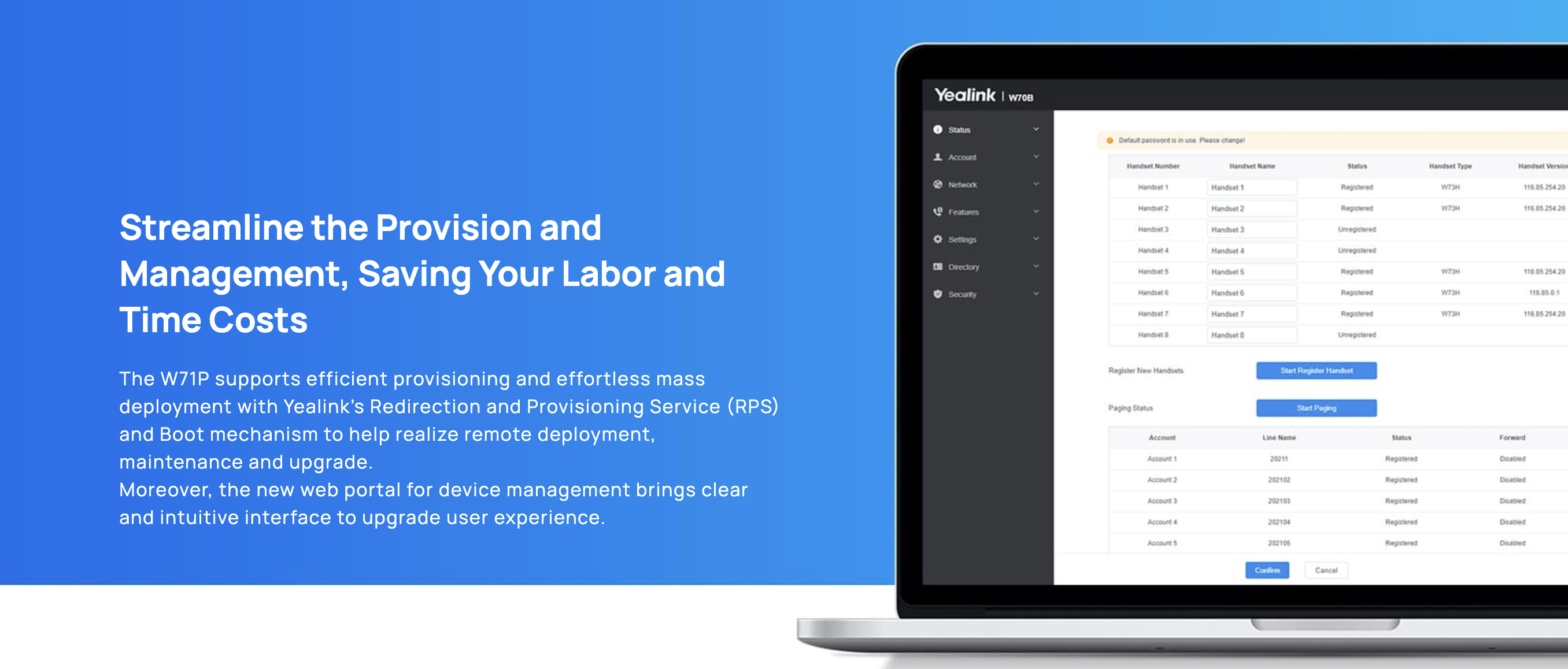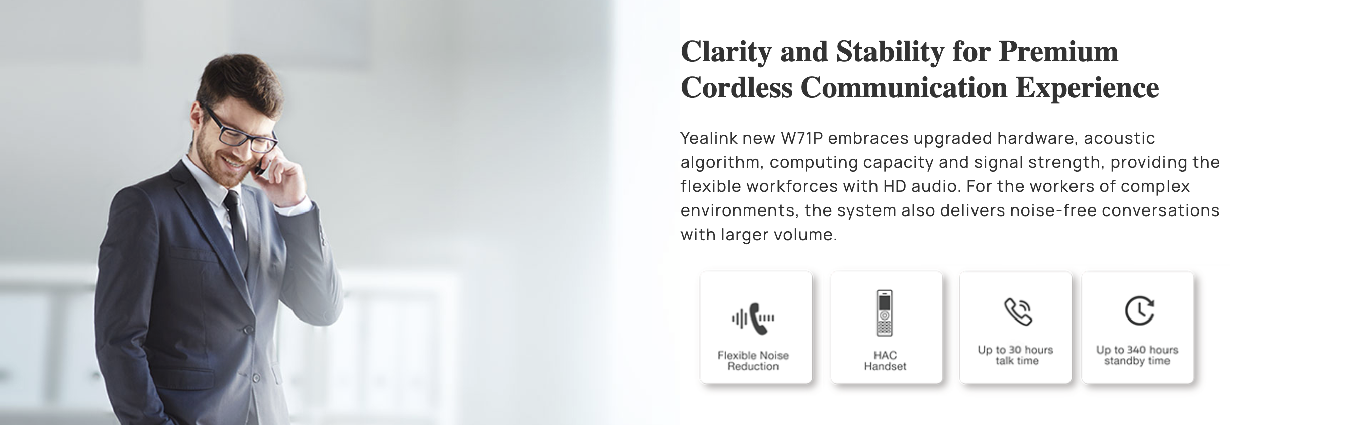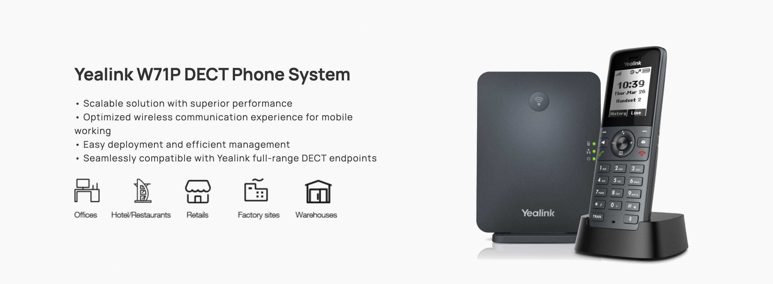 Supporting registration with up to 10 Yealink W71H DECT handsets, the W71P system is launched with robust