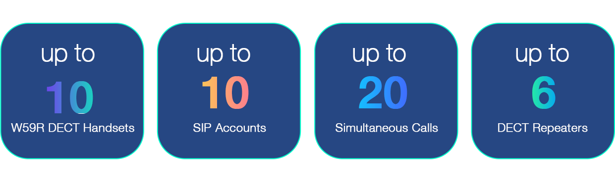 processing capacity for up to 10 SIP accounts and 20 silmultaneous calls. More flexibility and mobility could