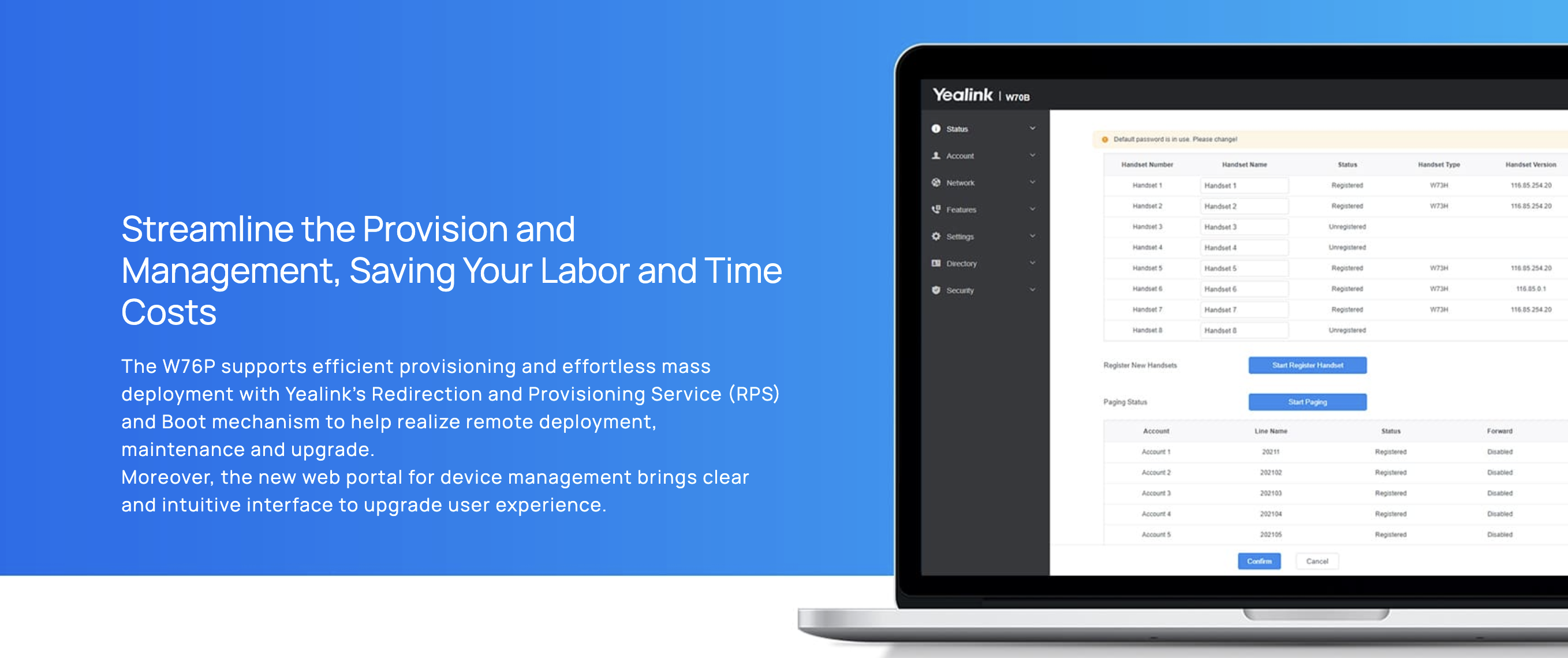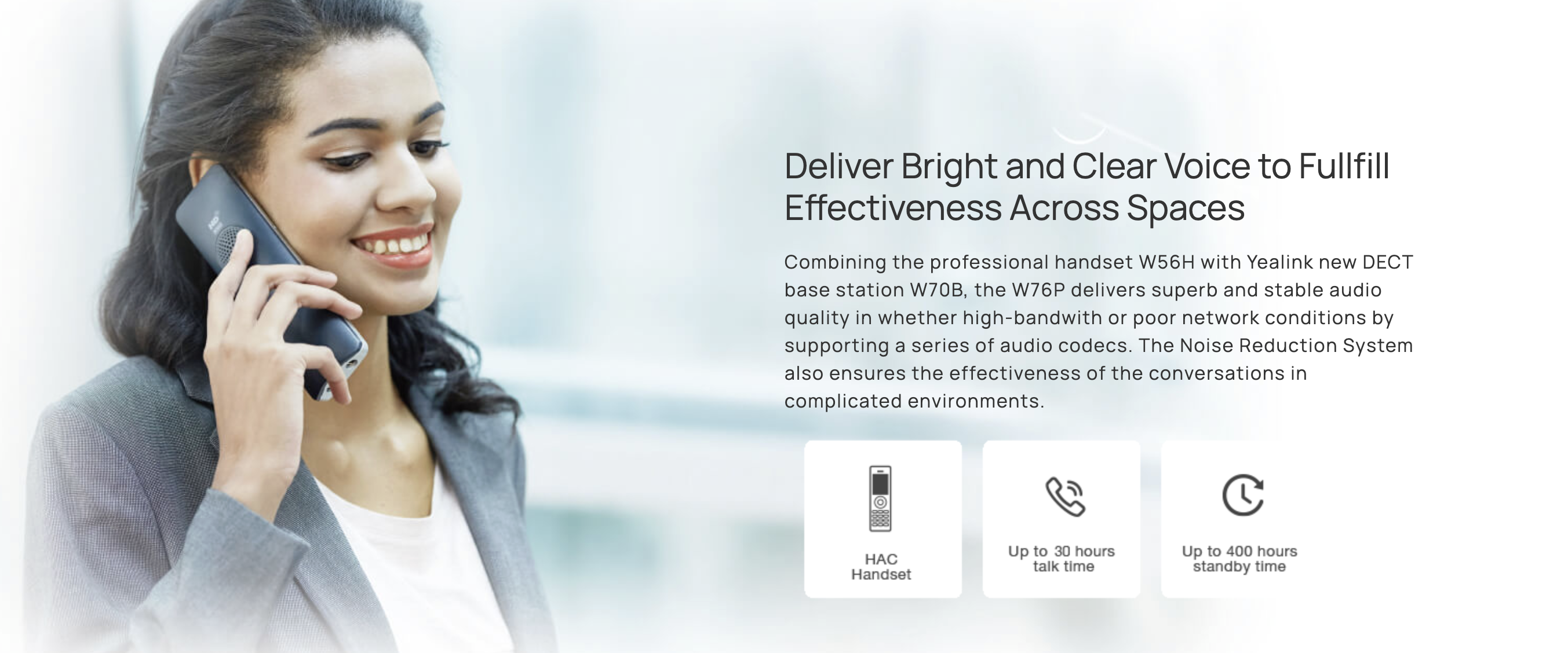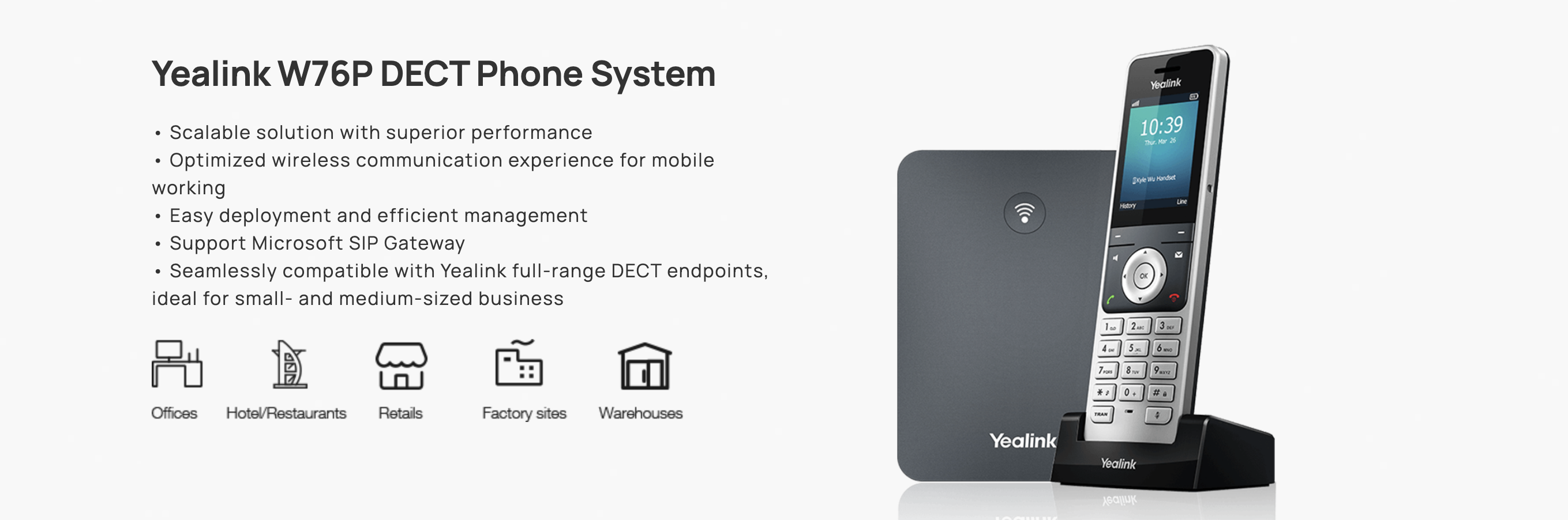 Supporting registration with up to 10 Yealink W59R DECT handsets, the W76P system is launched with robust