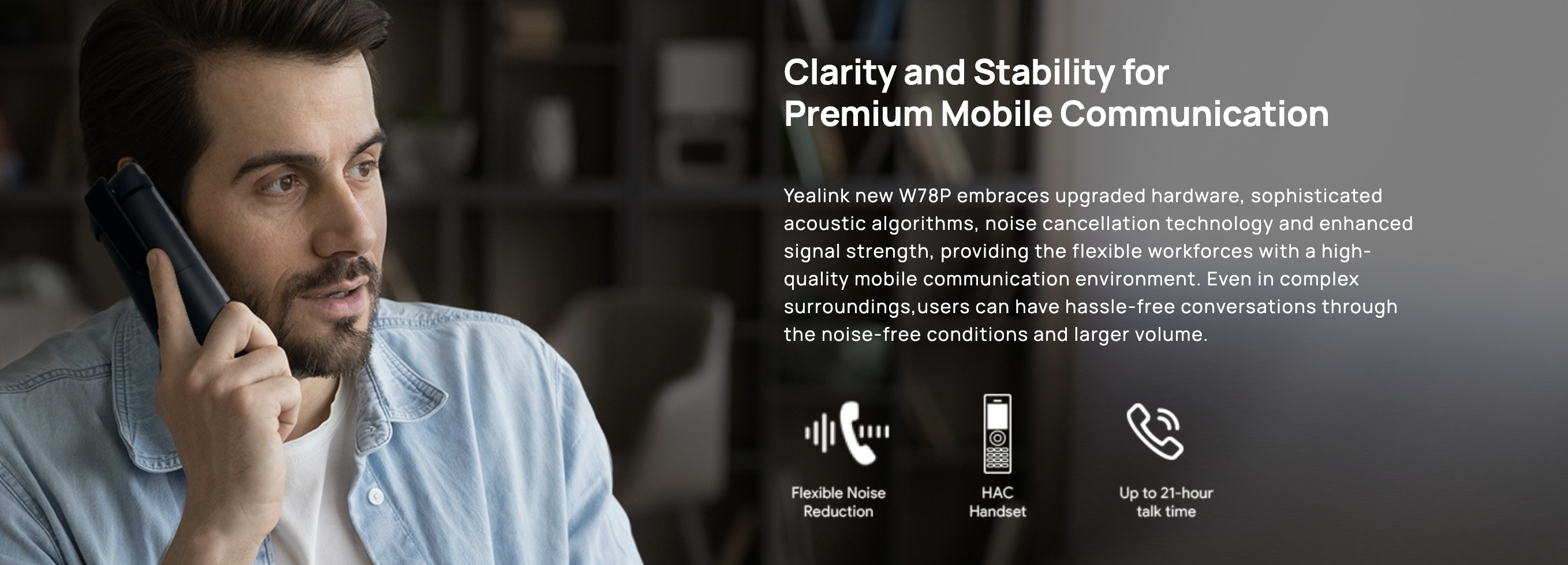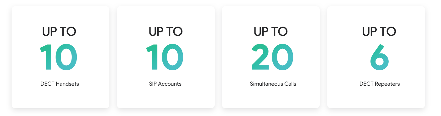 Supporting registration with up to 10 Yealink W78H DECT handsets, the W78P system is launched with robust processing capacity for up to 10 SIP accounts