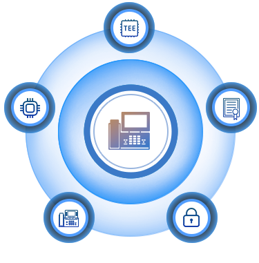 Three Rings of Security—Core Ring ensures device integrity by preventing tampering and unauthorized access; Shield Ring protects network connections against intrusions and attacks; and Guard Ring secures transmission by protecting signaling, media, and user data in transit and at rest.