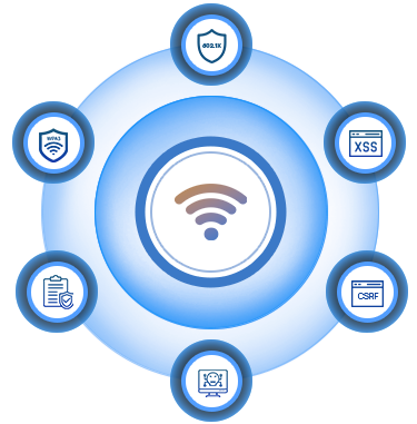 Using 802.1X authentication, WPA3 encryption, it protects against script input injections and cross-site attacks as well as content security policy, ensuring secure communications.